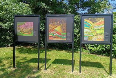Dix reproductions des œuvres de Lucien Pouëdras, en étroite résonance avec les paysages du Domaine, sont également à découvrir dans le parc (avec l’aimable collaboration de la commune de Saint-Caradec pour le prêt des supports). Partez à leur découverte !