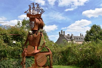 Marquée par la découverte de l’univers singulier et magique du Domaine de la Roche-Jagu, Béatrice Coron a imaginé, suite à la visite du parc en 2014, une sculpture en métal découpé qui puisse prendre place dans les jardins clos. Ce projet intitulé Voyage intérieur a été conçu et dessiné par l’artiste, puis réalisé chez un serrurier. Un soclage naturel en lierre a été installé à sa base afin que l’œuvre s’inscrive pleinement dans le paysage des jardins clos. Béatrice Coron livre ici sa vision onirique du voyage enrichissant la magie des lieux.